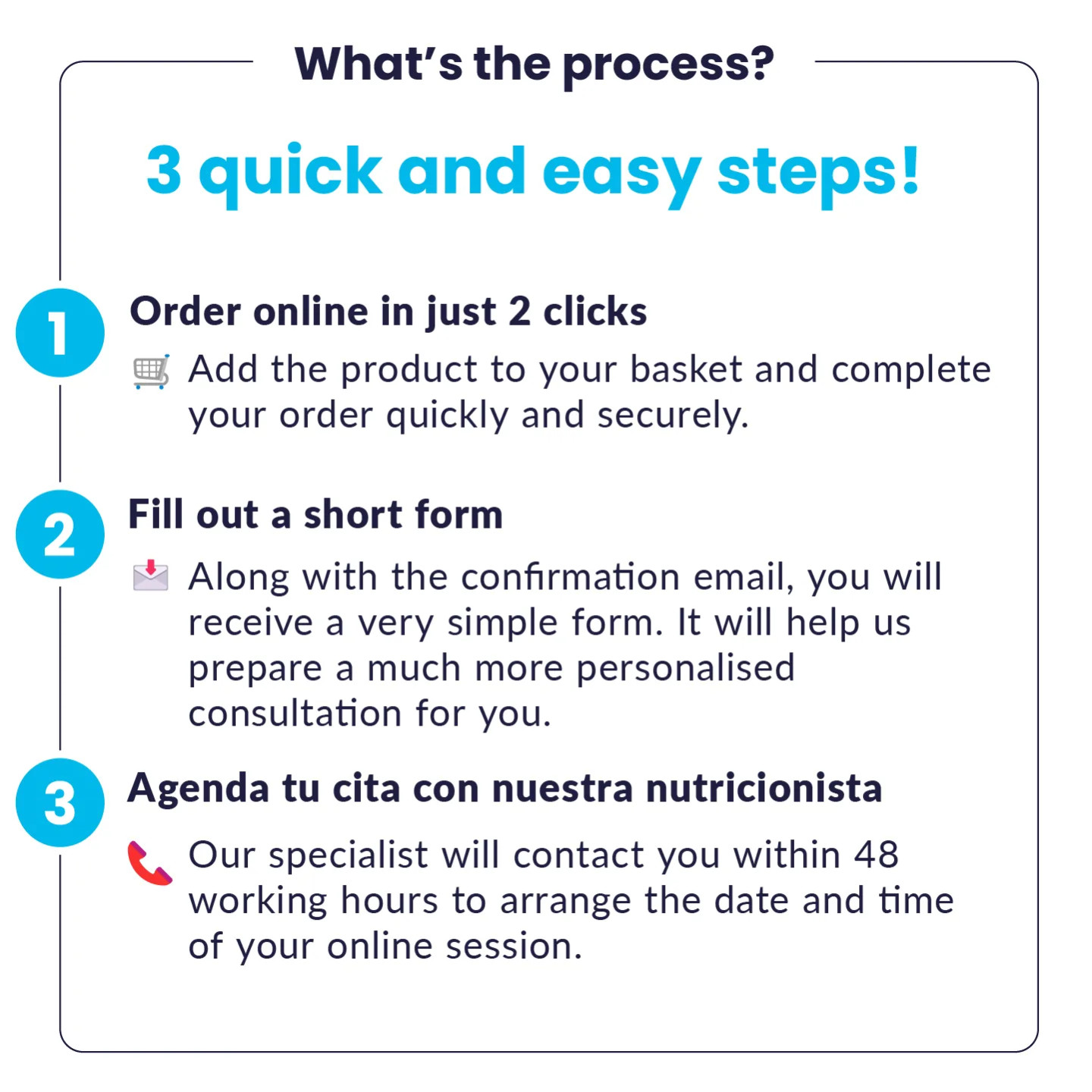 Book your consultation online and our nutritionist will contact you within the next 48 business hours to coordinate the time and day that best suits you in the afternoon!